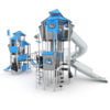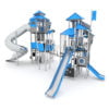 Et stort, dobbelt aktivitetstårn med tre sklier, en rekke plattformer og utfordringer for mange aldersgrupper. Konstruksjon av stål, og paneler i HDPE. Velg mellom flerfarget, grønn, rød, blå eller brun farge.