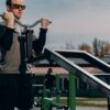 Utendørs apparat for biceps curl. Justerbar vektmotstand fra 12,5 til 82,5 kg.