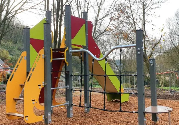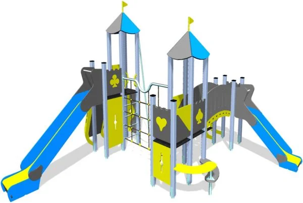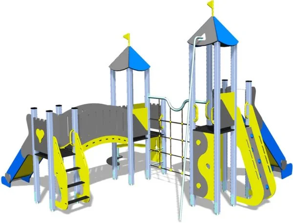 Et innholdsrikt klatrestativ designet som et slott, for 30 barn. Alder: 2-12 år.