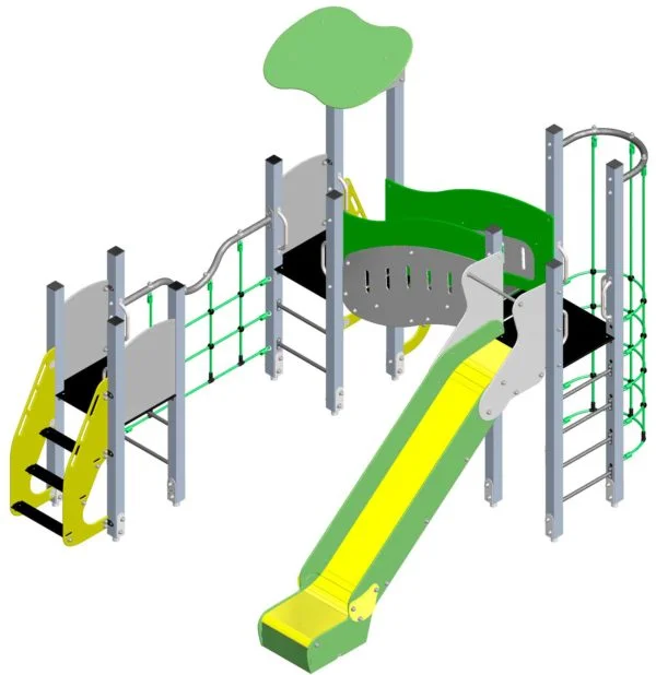 Jupiter er et enkelt klatrestativ med tre plattformer, forbundet av klatrenett og bro. Velg mellom trapp, klatrevegg eller vertikal tunnel for å komme opp til plattformene. Fra øverste plattform er det en sklie.