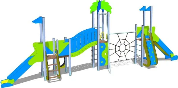 Et smalt klatrestativ, perfekt for smale områder. For 32 barn. Alder: 2-12 år.