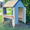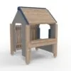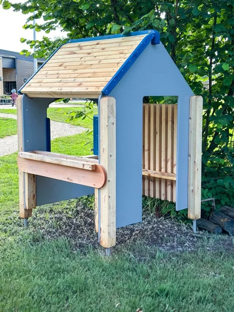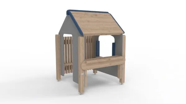 Lekehuset Lena har et lyst og åpent design, som fremmer fantasifull lek. Det har tak over den ene siden, mens den andre er åpen og gir fritt utsyn til himmelne. En benk langs trepanel-veggen er et perfekt sted for hvile, og vinduet gir barna mulighet til å interagere fra flere ulike vinkler. Lekehuset har også en åpen renne til sand og leketøy. Fås i oransje + blå eller ufarget + blå.