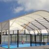 SkyPadels padeltak i PVC-membran kan tilpasses alle våre padelbaner. Takhøyden på 10m sikrer en fullverdig spillopplevelse, og den buede fronten fås i enten 12 eller 25m. Taket er spesielt utviklet for å tåle tøffe forhold, og har følgende kvalifikasjoner: