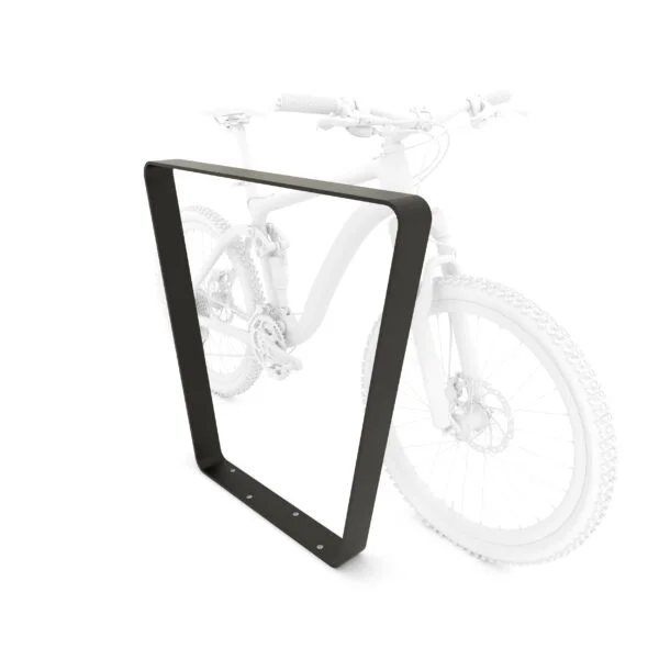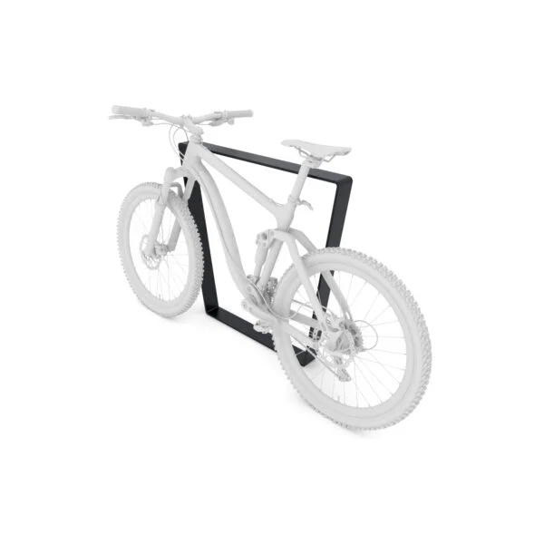 Et stilrent sykkelstativ hvor to sykler kan parkeres fra hver sin side. Høyden på stativet gjør det mulig å låse sykkelen i selve rammen, noe som minsker muligheten for tyveri.