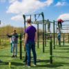 Et stort stativ med mange viktige elementer: Dips-stativ, armgang, ribbevegg og en rekke tverrstenger som settes i valgfri høyde.