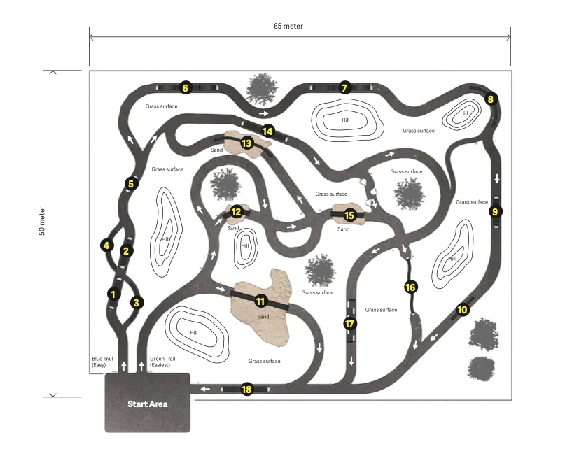 En sykkelpark kan tilpasses ulike målgrupper, fra de som har sin første erfaring med sykkel, til fartssøkende ungdom og voksne. Sammen med vår produsent utarbeider vi et forslag basert på målgruppe, tilgjengelig areal og budsjett.